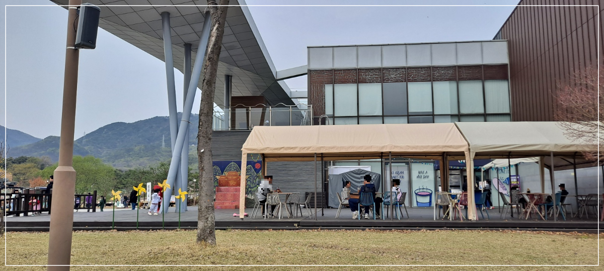 박물관 옆쪽으로 카페가 하나 있는데, 카페 앞에서 차를 마시면서 휴식을 취할 수 있습니다.