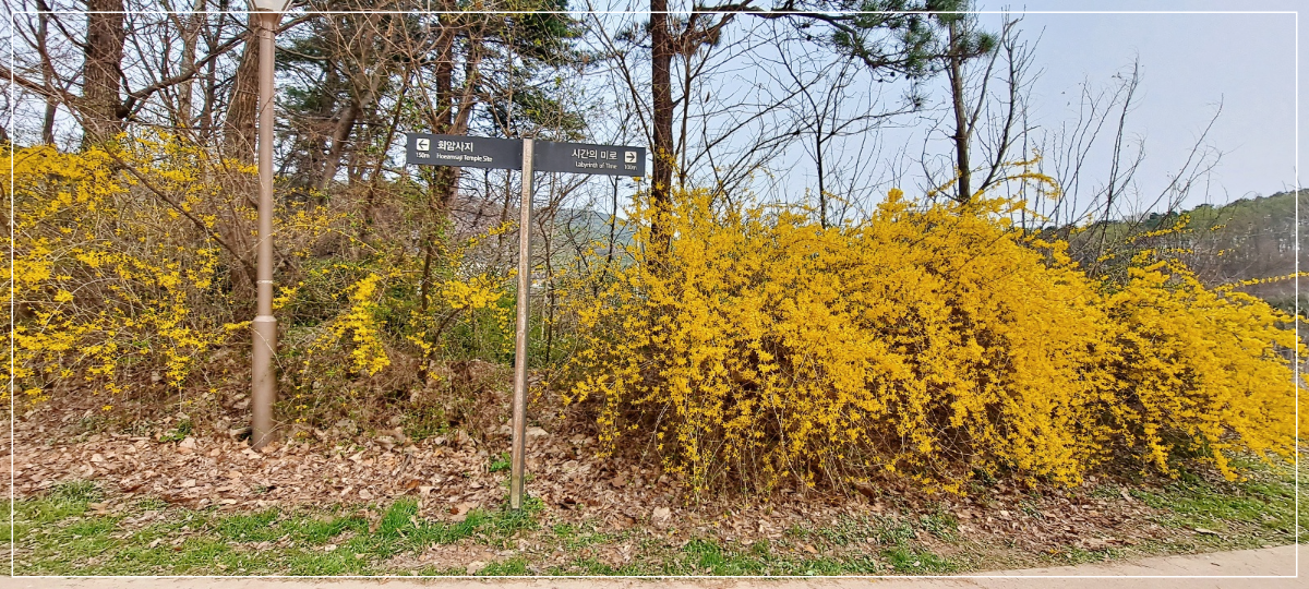 공원 가장자리에 핀 개나리도 예뻐 보이네요. ^^