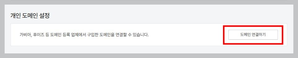 [개인 도메인 설정]에서 [도메인 연결하기]를 클릭합니다.