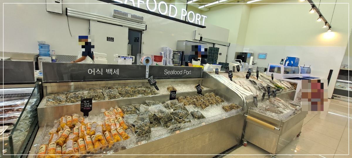 해산물 코너에는 여러 명의 직원분들이 생선을 바로 손질해서 판매하고 있었습니다.