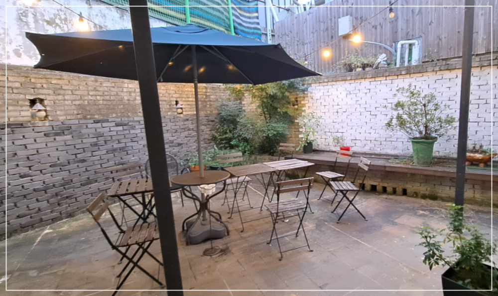 밖으로 문을 열고 나가면 야외 테라스가 있습니다. 지하 1층이지만 1층 같은 느낌입니다.
