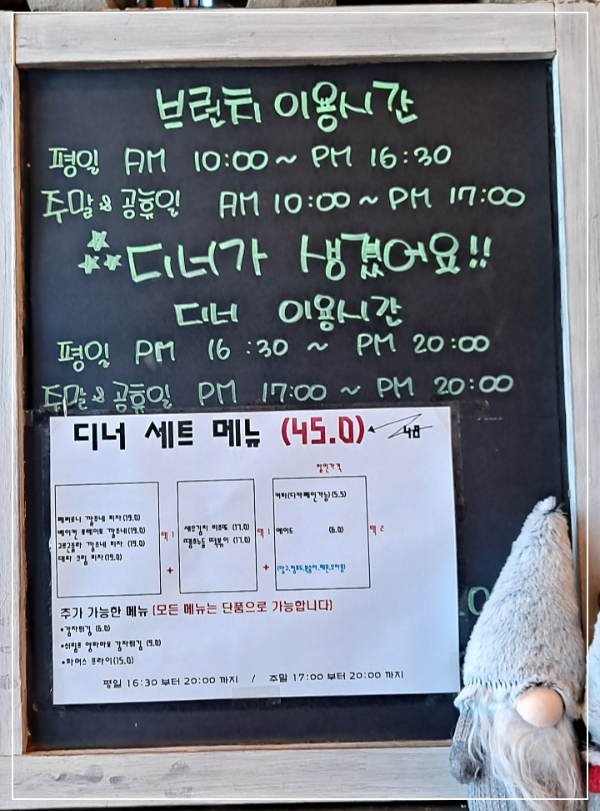 - 브런치 이용시간 : 평일 10:00~16:30 / 주말 & 공휴일 10:00~17:00